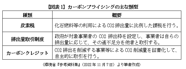 カーボンプライシングとは、CO2等の温室効果ガス(GHG)排出に対してコストを課すことで、企業や社会全体の脱炭素化を促進する仕組みです。日本国内でも、さまざまな形態のカーボンプライシング制度が既に存在します。その中でも今後国内で利用拡大が期待されるのが、「炭素税」「排出量取引」「カーボンクレジット」の3つです(図表1参照)。