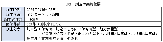 MS&ADインターリスク総研では、2025年2月に教育・保育施設等を対象に自施設における事故報告書およびヒヤリハット報告書の運用状況について調査を実施しました。調査の実施概要については表1のとおりです。