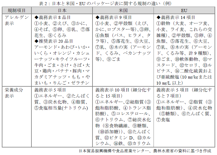 さまざまな規制の違いがある中で、今回は、健康危害に直結する原材料に関する規制とパッケージ表示に関する規制の違いについて日米欧で比較します。