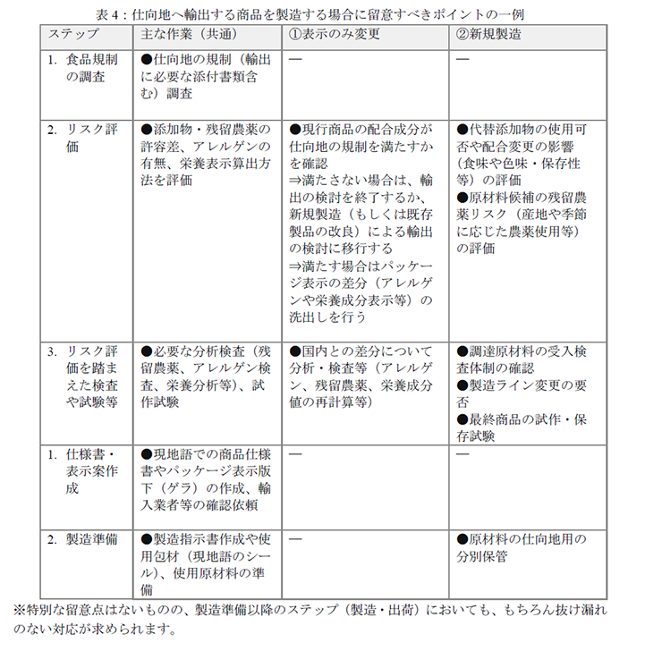 仕向地の規制を踏まえた加工食品の製造に関する留意ポイント