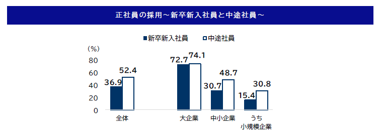 正社員採用予定、新卒新入社員は 36.9%、中途社員は 52.4%