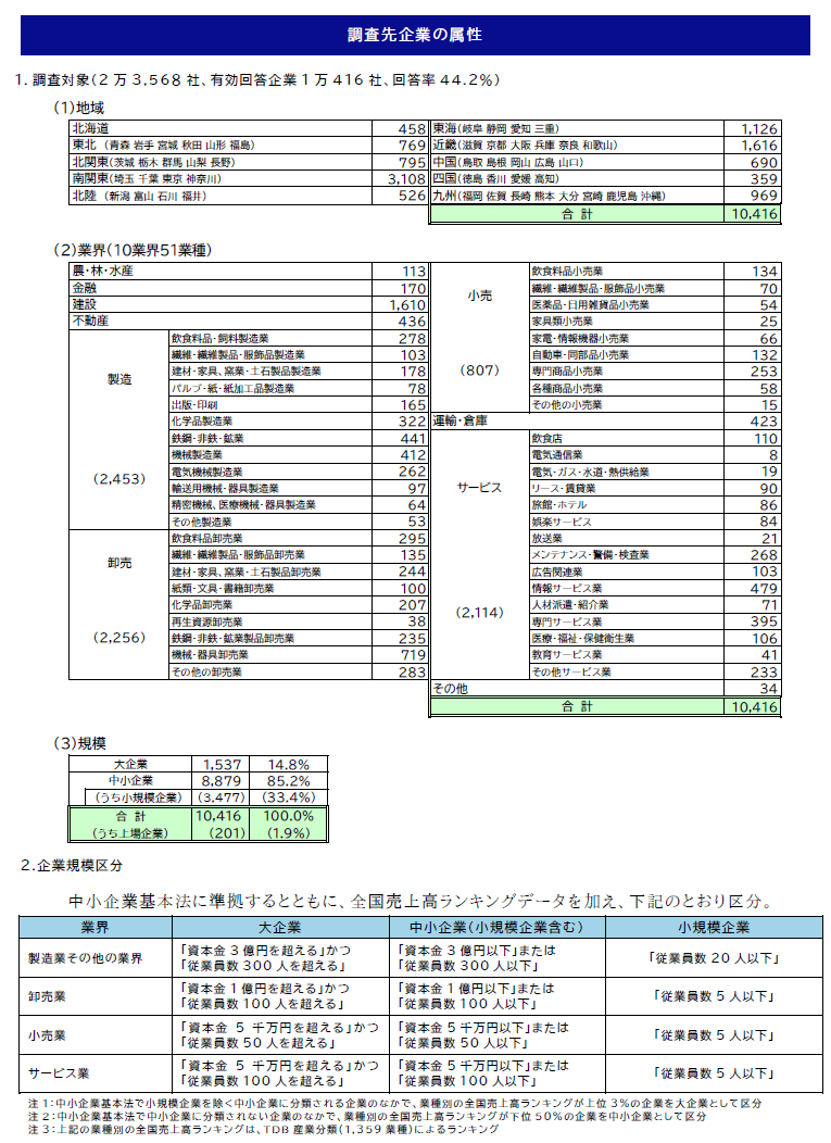 業界別では、『運輸・倉庫』が52.5%で最も高く、『製造』(50.6%)、『農・林・水産』(50.4%)も5割台で続きました。企業からは「アルバイト・パートの戦力化を図っている」(飲食料品・飼料製造)といったコメントがあがりました。