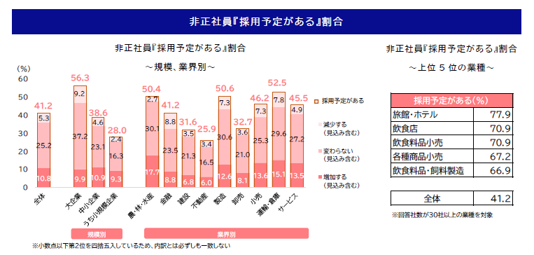 非正社員『採用予定がある』割合は3年連続で低下