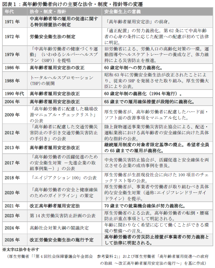 企業における高年齢労働者安全衛生対策の歴史的変遷 ―2026年4月施行の改正労働安全衛生法の対応に向けて―
