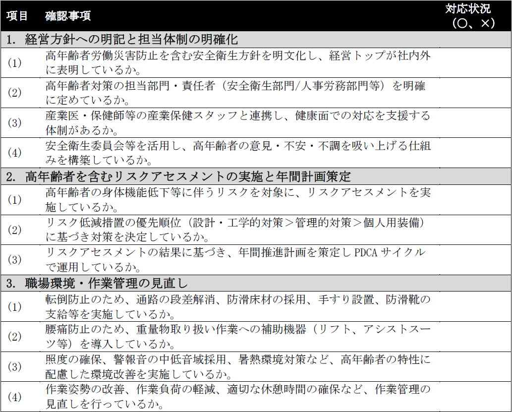 高年齢労働者の労働災害防止対策 重点チェックリスト
