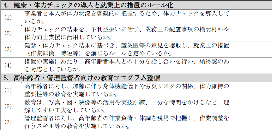 6) 厚生労働省「高年齢労働者に配慮した職場改善マニュアル・チェックリスト」