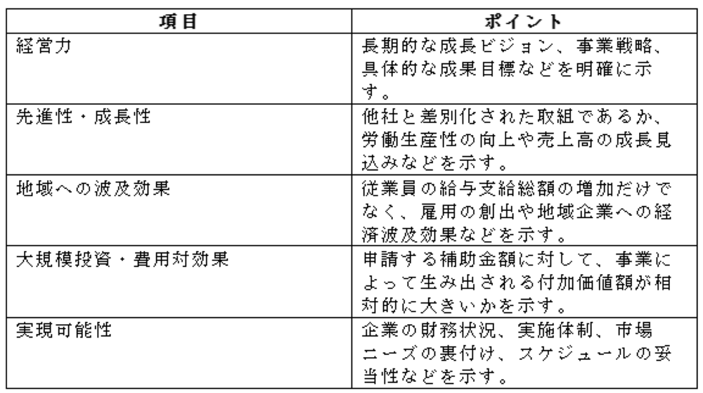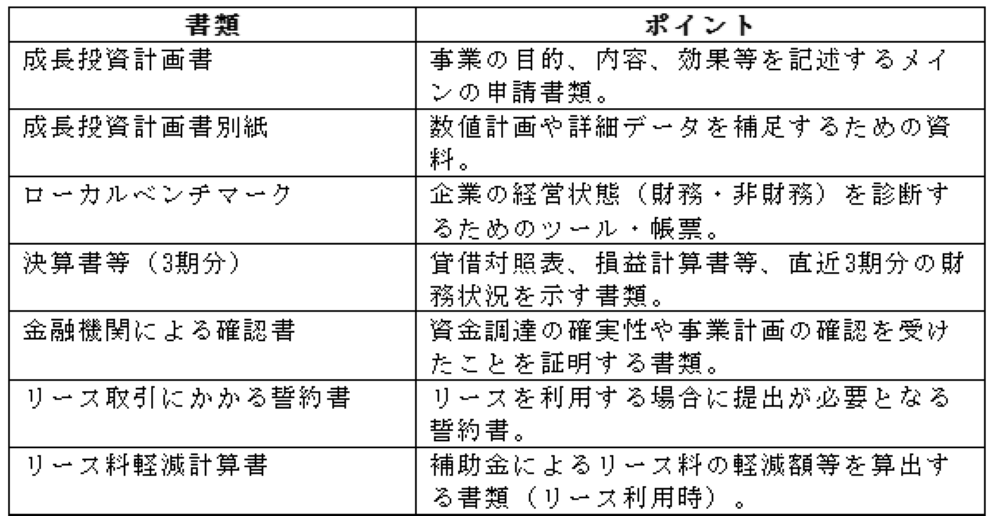 申請時に重要な点として、補助事業の内容をまとめた「成長投資計画書(事業計画書)」の作成が挙げられます。成長投資計画書には、投資を行う目的や具体的な内容、投資額の詳細と資金計画、そして投資によって予想される効果(生産性向上の度合いや賃上げの具体的な計画等)を詳しく記載する必要があります。