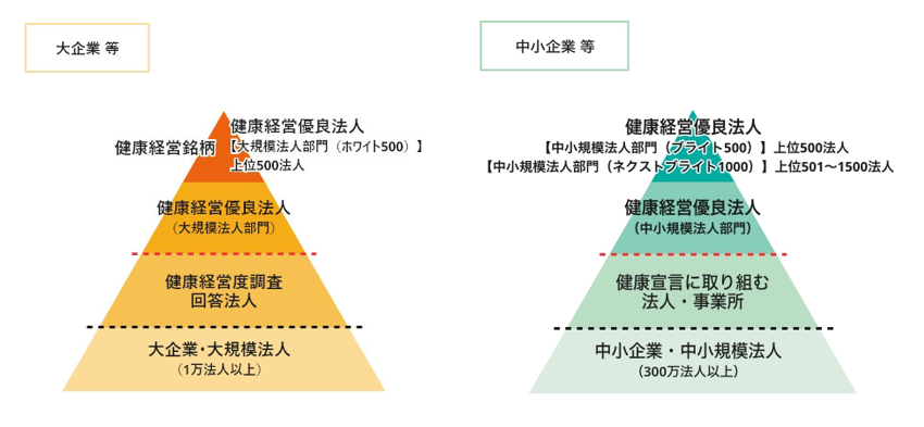 経済産業省が2025年度からの取組として新たに掲げているのは、①中小企業の上位500を示す「ブライト500」の下位である、「ネクストブライト1000」の新設と、②大企業における健康経営度調査の大きく2つがあります。