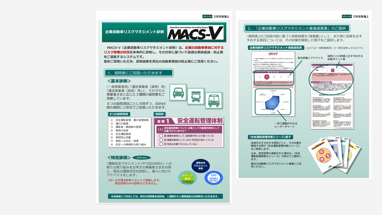 自動車事故に対する企業のリスク管理の状況を様々な角度から分析し、改善策をアドバイスします。